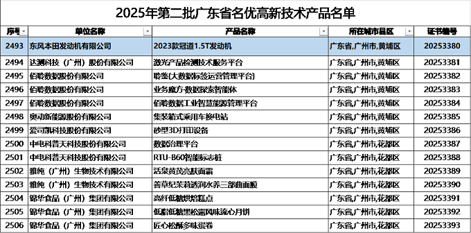 近日,2025年第二批广东省名优高新技术产品名单正式公布,经过严格的评审与公示,东风本田发动机有限公司“冠道1.5T发动机”凭借其卓越的技术创新性和竞争优势,成功通过“广东省名优高新技术产品”认定,标志着公司在科技创新发展方面取得持续突破,科技创新实力再获权威认可。